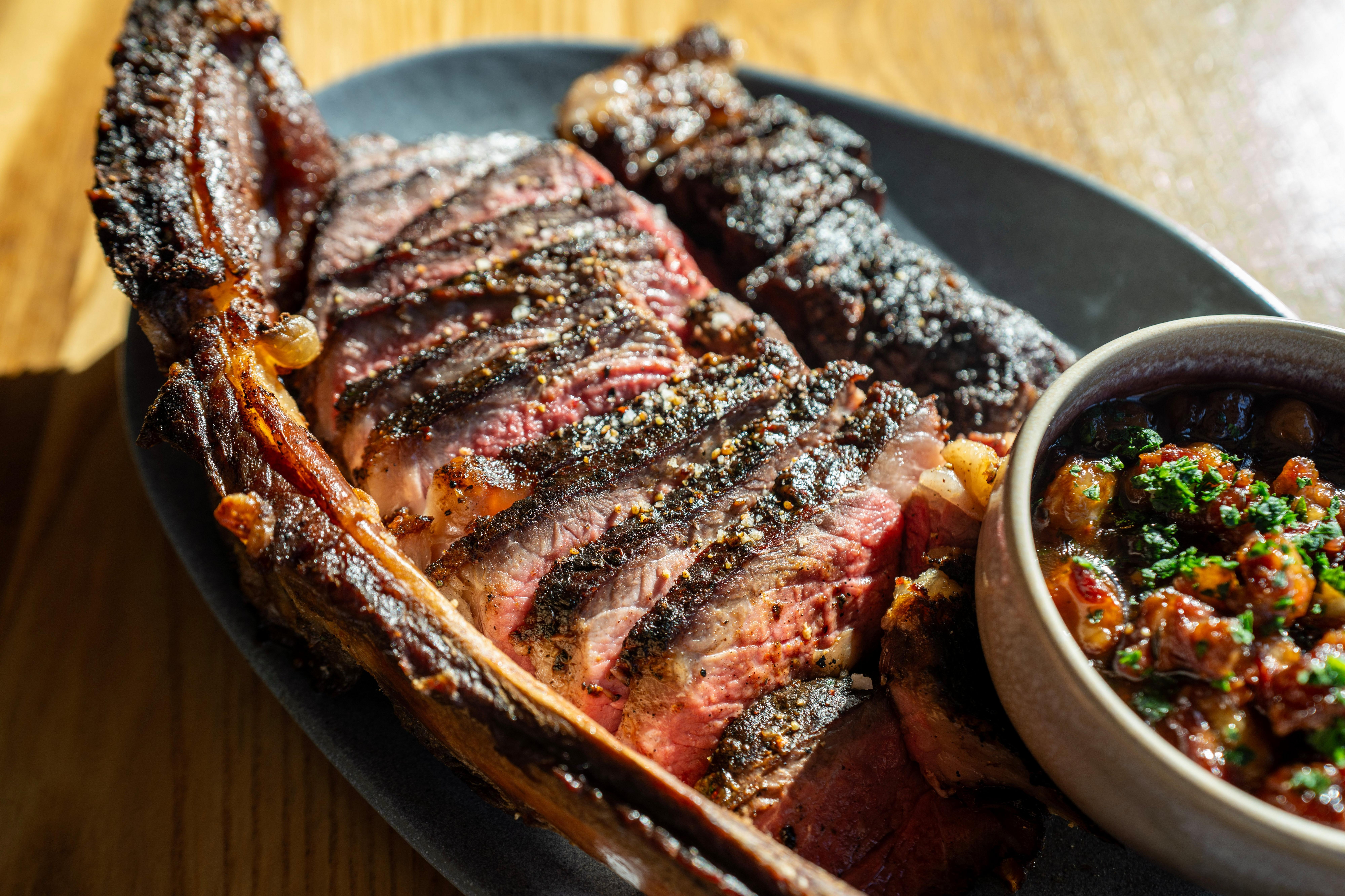 While menu items come and go, there are a few classics that have been around since day one. The Otium potatoes are a must-have with crème fraiche and Aleppo pepper, which has a milder kick than your average chili flakes. For Tim, it’s all about the dry-aged, slightly charred, low-smoked, and sauced-up tomahawk steak.